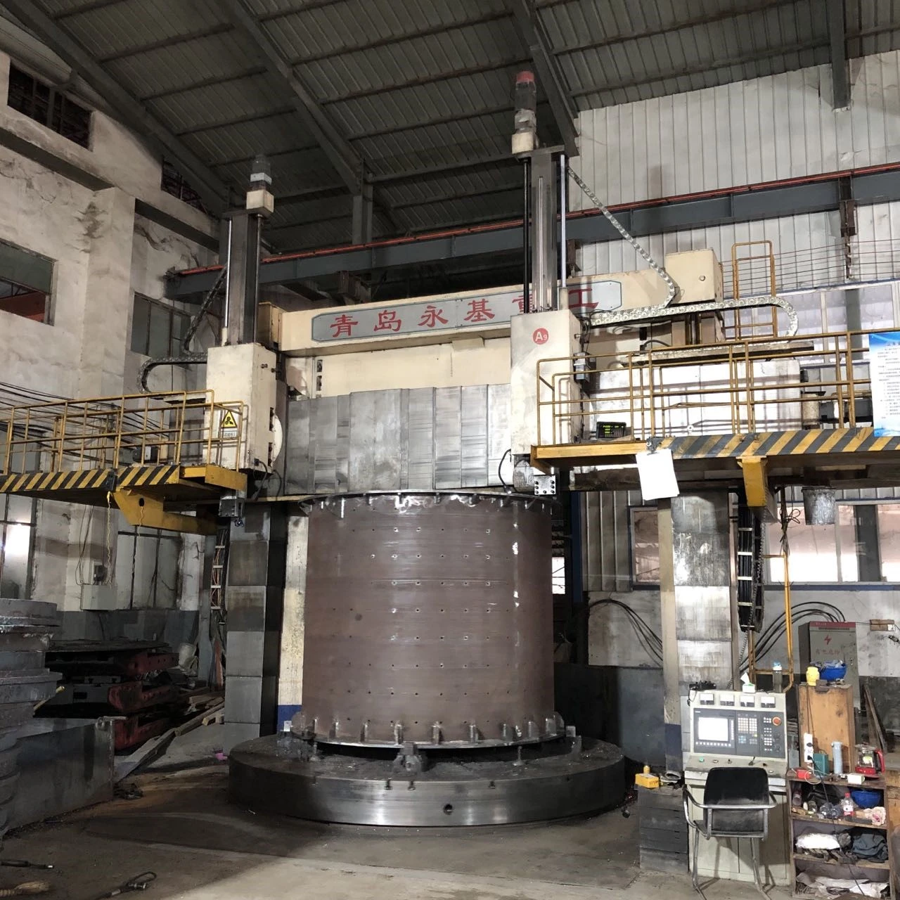 5米立车加工球磨机筒体